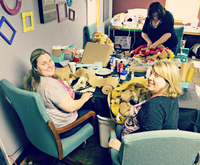 Our last day was more making...we made burlap wreaths, pom pom trim pillows and finished up our other projects. The sun also came out so we could eat our final meal on the deck.